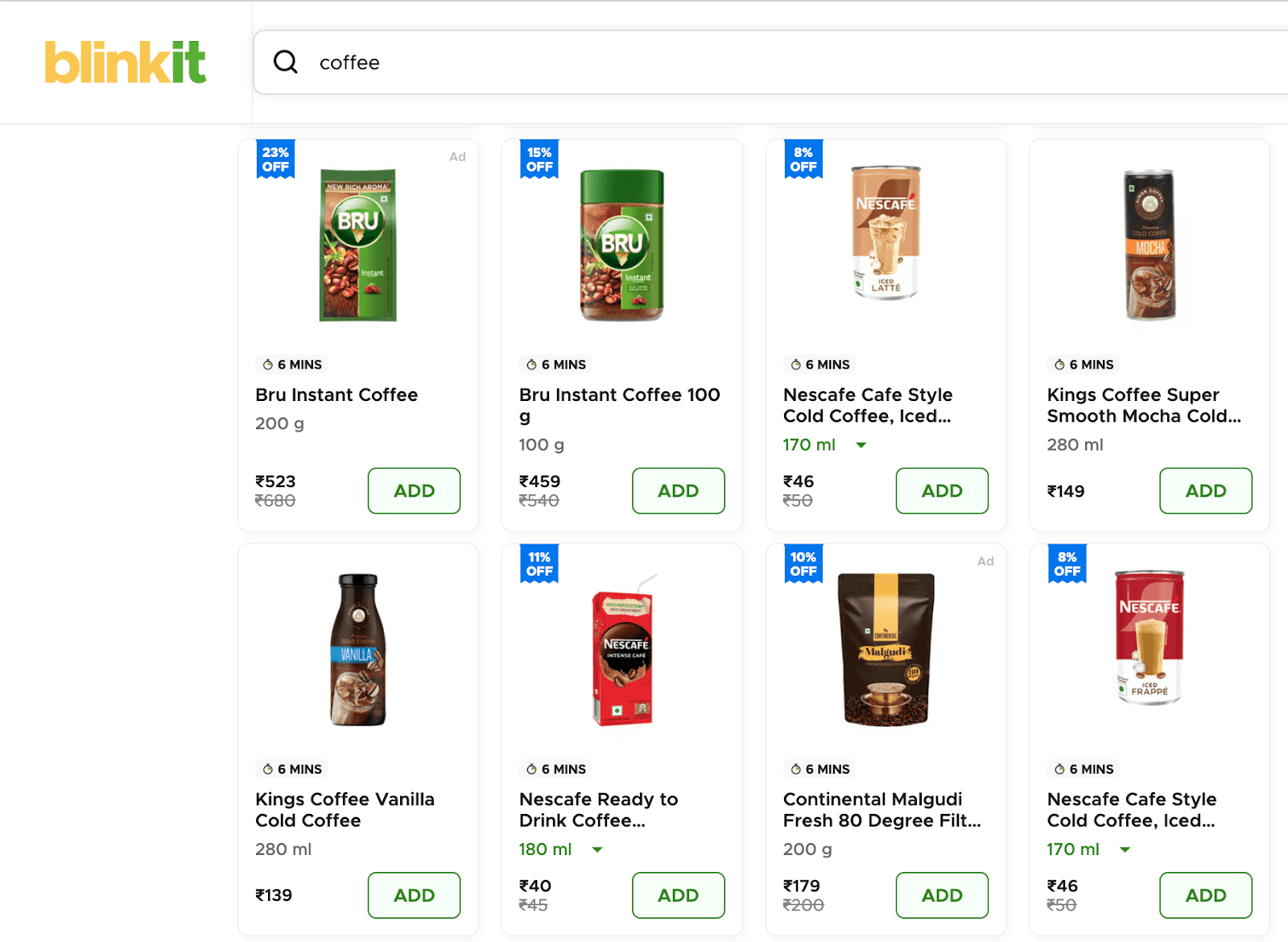 Take a look at this Bru example on Blinkit: the 100g SKU ranks organically in the top 5 for the keyword “coffee”—without any paid support. Smartly, Bru runs an ad on its 200g SKU instead. The result? Increased shelf visibility, better screen real estate, and no wasted spend cannibalizing organic traffic.