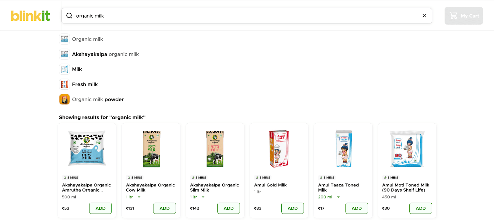 A great example of this in action is Akshayakalpa Organic Milk. Whether you search on Blinkit or Zepto, Akshayakalpa consistently shows up at the very top for “organic milk”. They’ve built this dominance not through heavy discounts, but through reliable in-stock availability, strong performance metrics, and smart keyword indexing. By being constantly visible across platforms, without relying on paid boosts, they don’t just win first-time conversions, they build repeat purchase habits. The brand becomes a natural default, simply because it’s always there when the customer is ready to buy. In Q-commerce, this is what real retention looks like: being visible enough, often enough, to become the default choice.